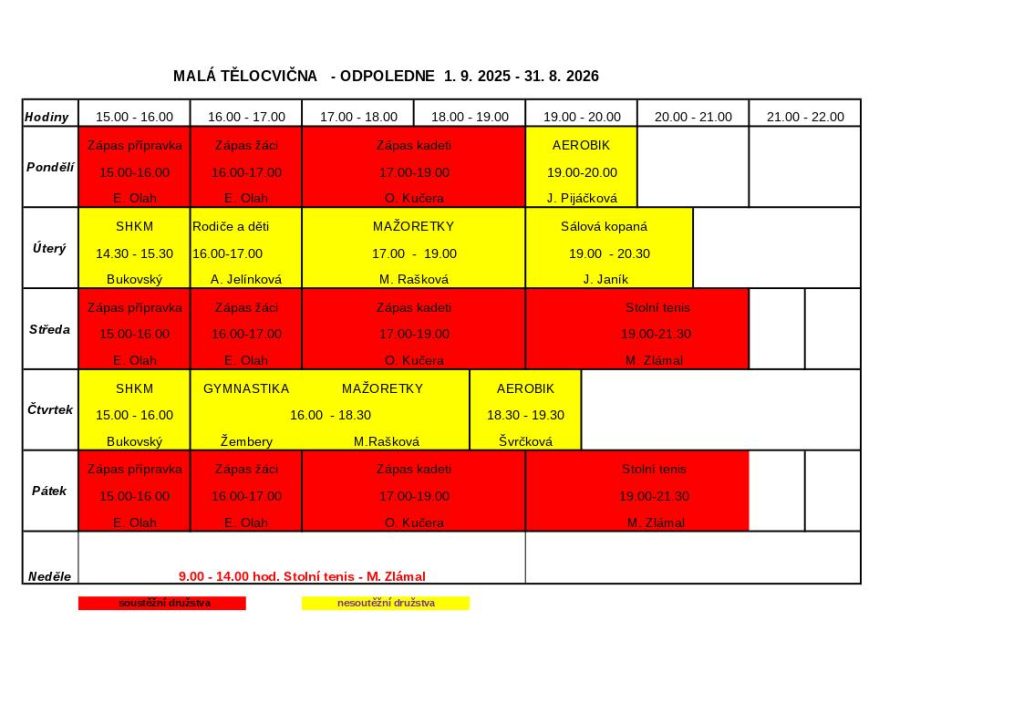 Aktuální rozvrhy tělocvičen na školní rok 2025/2026 Publikováno: 21. 8. 20251. 9. 2025 Autor: Radek Polášek