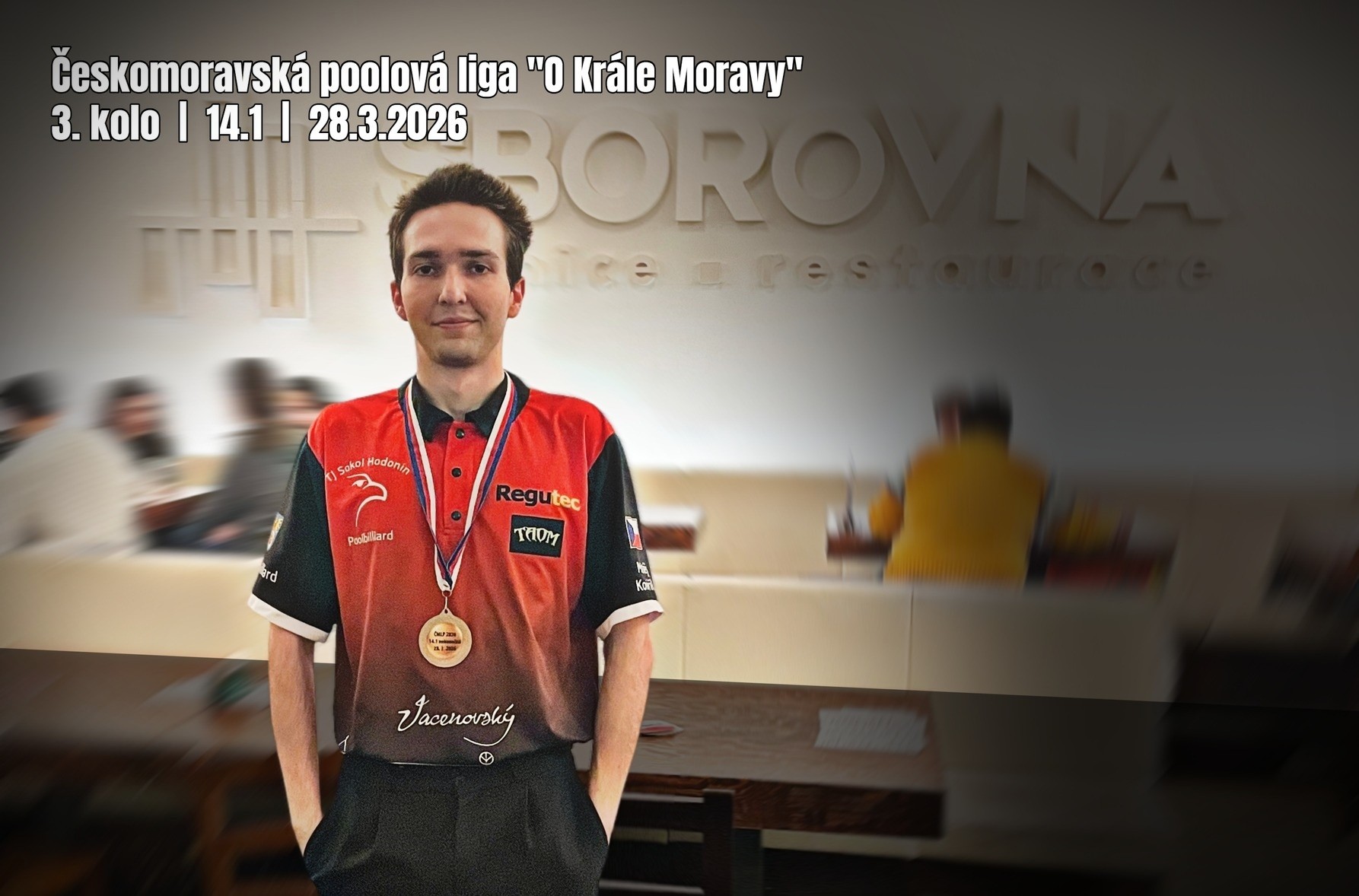 V sobotu 28. března se odehrálo 3. kolo Českomoravské poolové ligy „O Krále Moravy 2026“ v disciplíně 14.1 nekonečná. Turnaje se zúčastnilo 17 hráčů, včetně našich dvou zástupců – Pavla Buly a Matěje Kováříka.