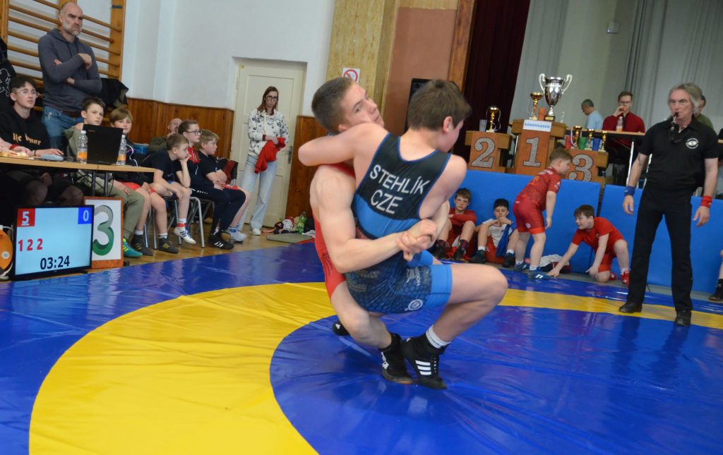 Ve váze do 43 kg dominoval Matyáš Holický, který se po čtyřech výhrách radoval ze zlaté medaile. Holický si bravurně poradil i s finálovým soupeřem Markem Moravcem, kterého již v první periodě položil na lopatky.